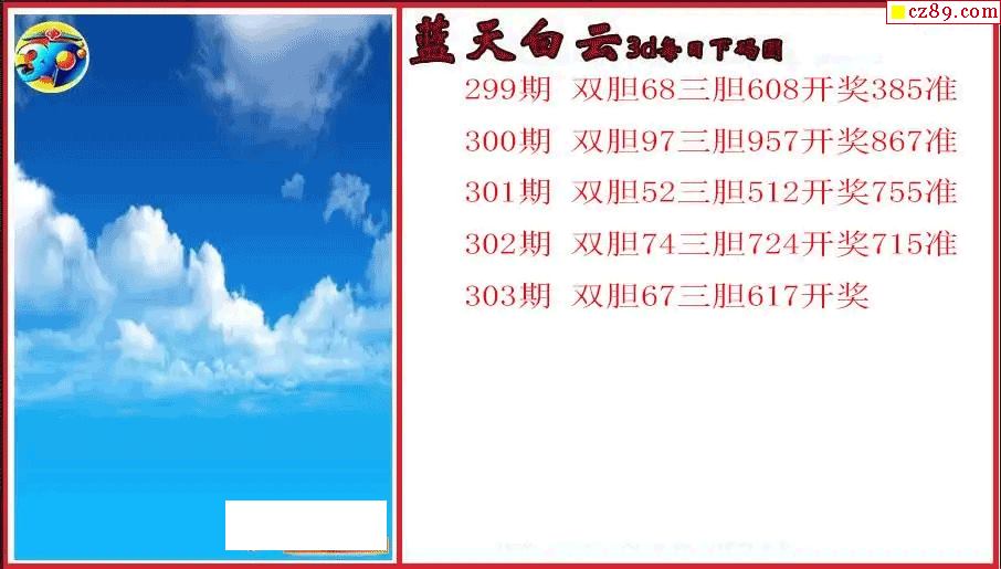 > 25年303期3d 蓝天白云每日下码图
